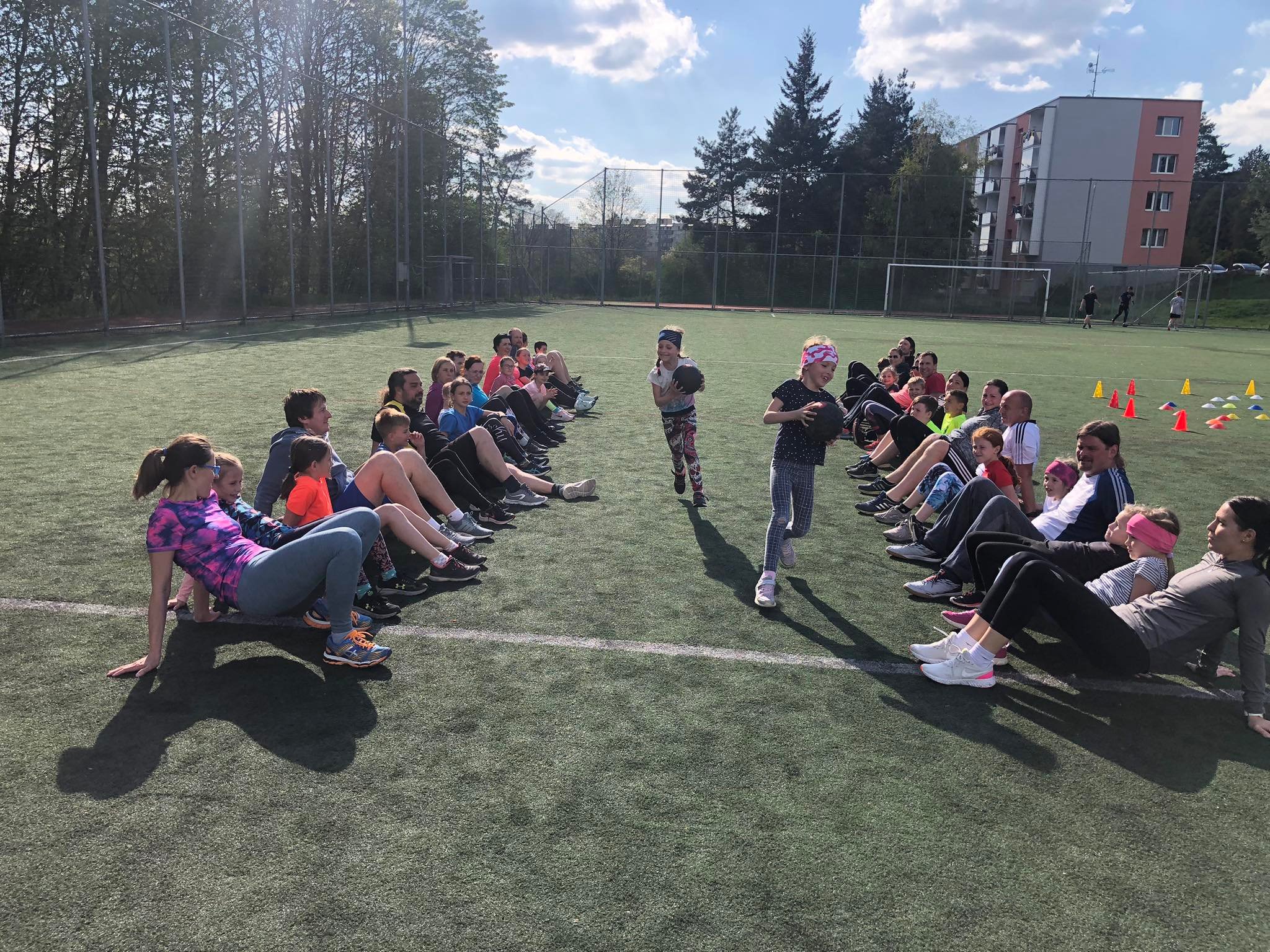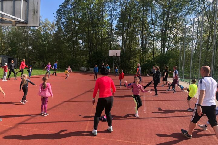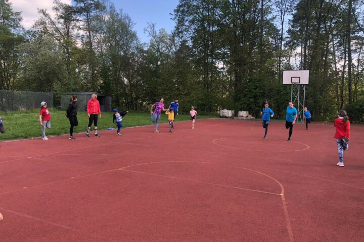 Trénink jsme zahájili rozběháním všem účastníků v lesíku v terénu kolem školy. Následovala společné rozcvičení, dále jsme si užili driblování a zařadili jsme také hody s míčem. Následovala povzbuzovaná hra s kloboučky a posilování s medicimbaly.