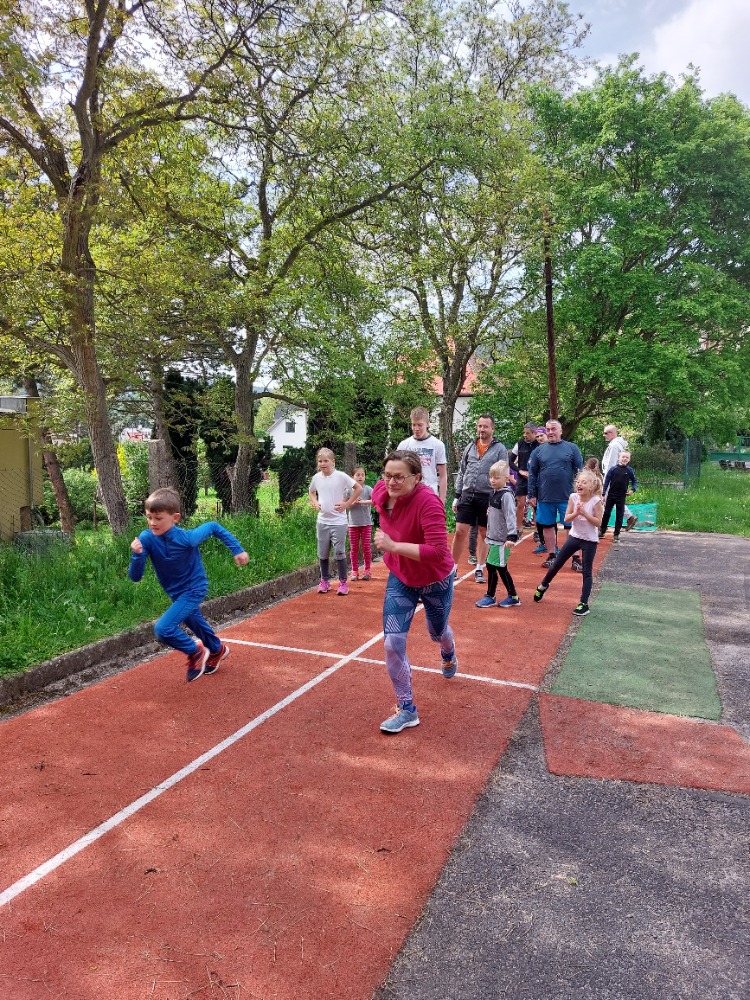 Na závěr si malý atlet zasprintoval proti svému rodiči a můžeme se těšit na společné závody, které proběhnou 7.6.2023 od 16hod. na Městském stadionu.