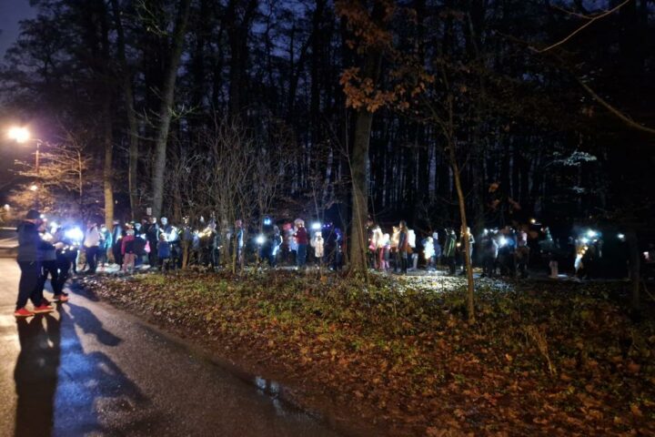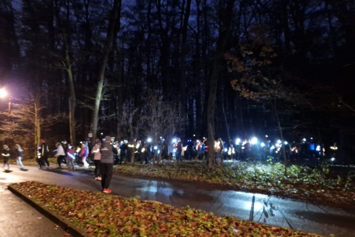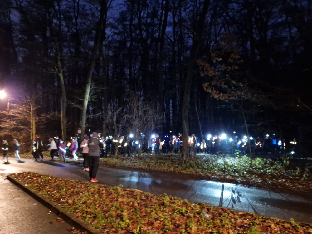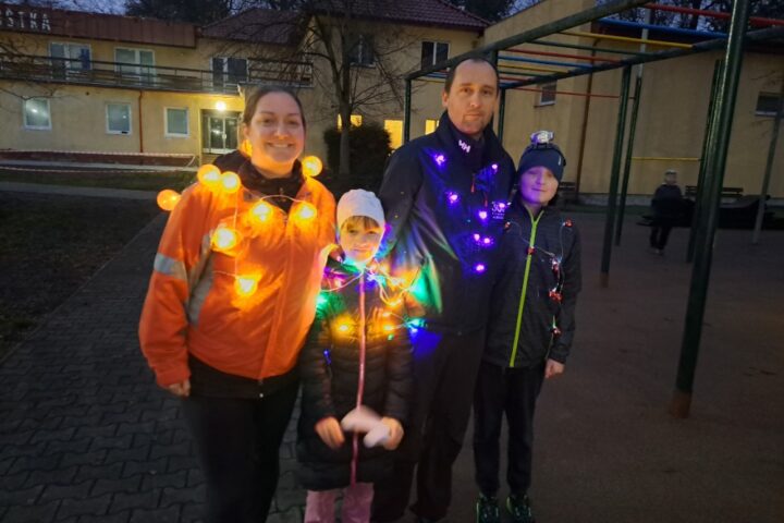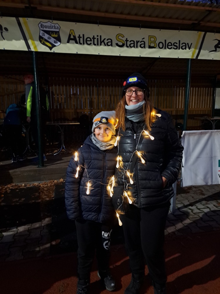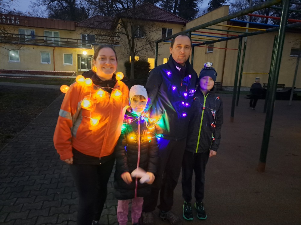 Po společné fotce jsme vyběhli do lesoparku Houštka. Pro děti to byl nezapomenutelný zážitek běžet v tak temném lese a rodiče si užili nenáročný běh se svými dětmi. Společně jsme Houštku krásně rozsvítili.
