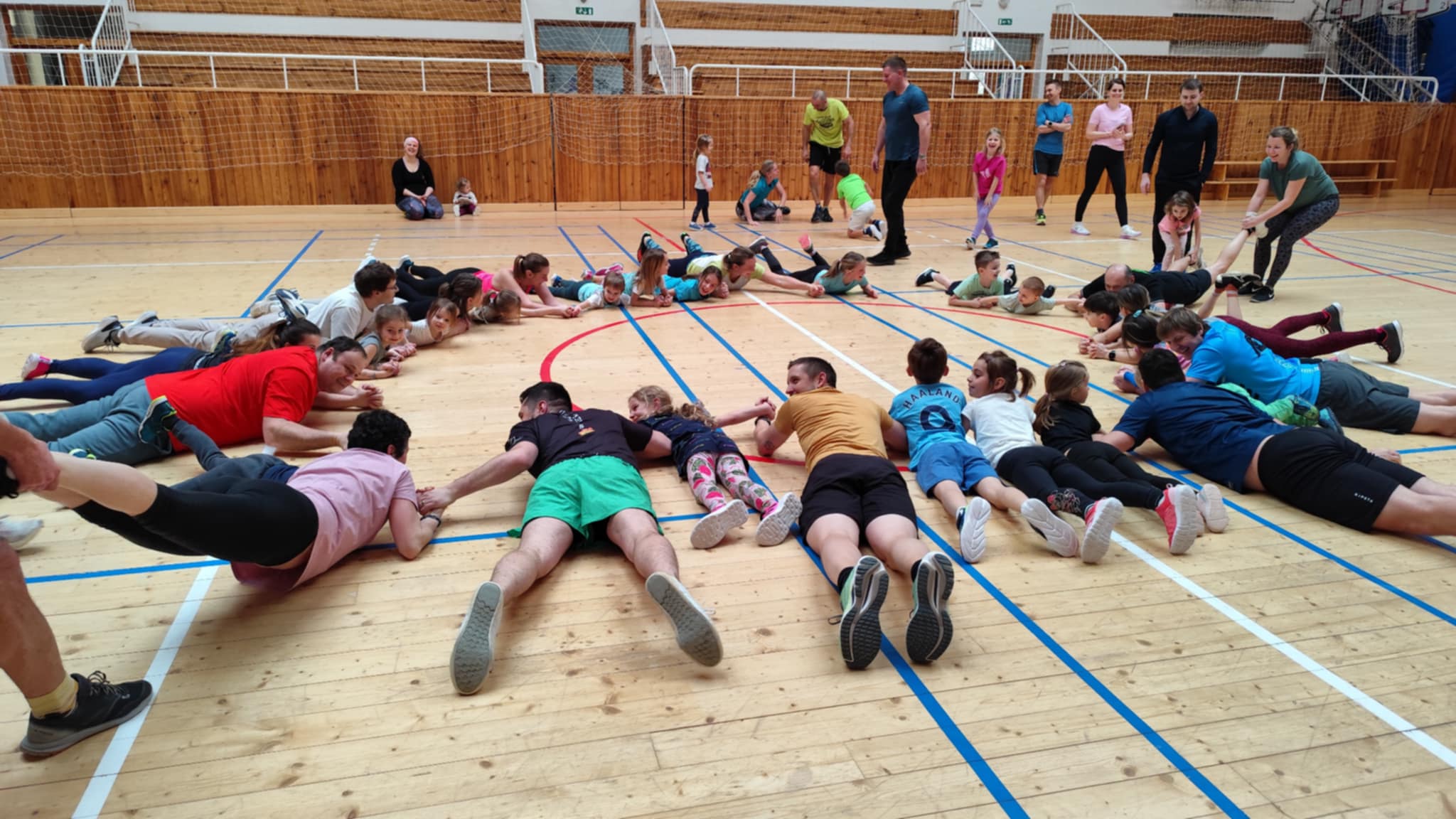 – děti cvičí podle trenéra, rodiče na trenéra nevidí a cvičí zrcadlově podle svých dětí