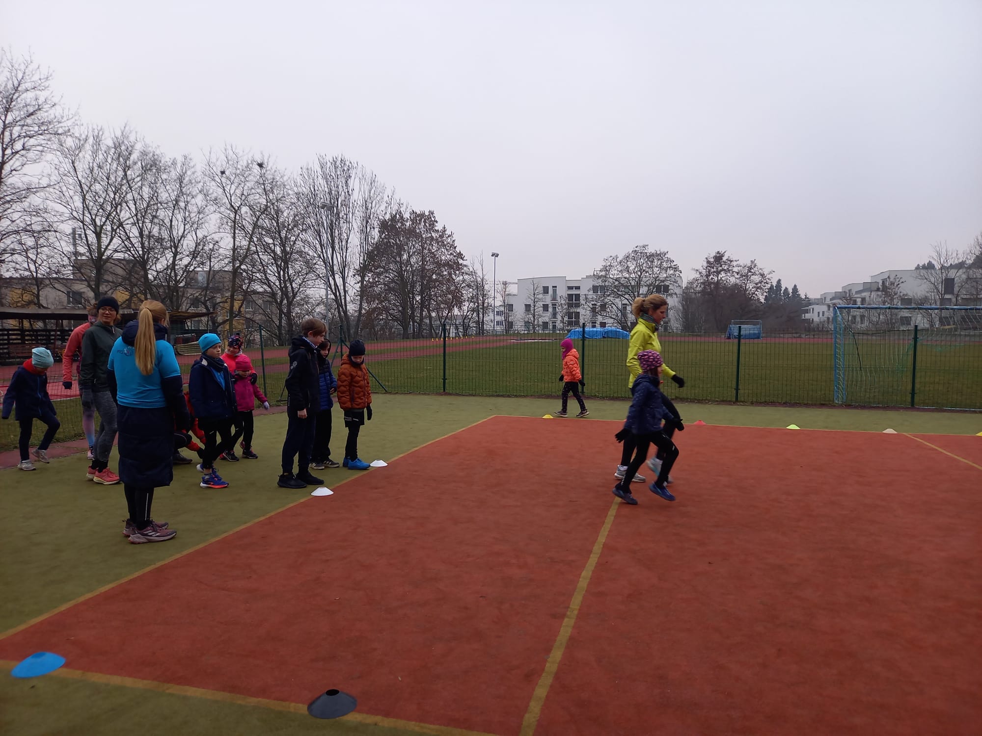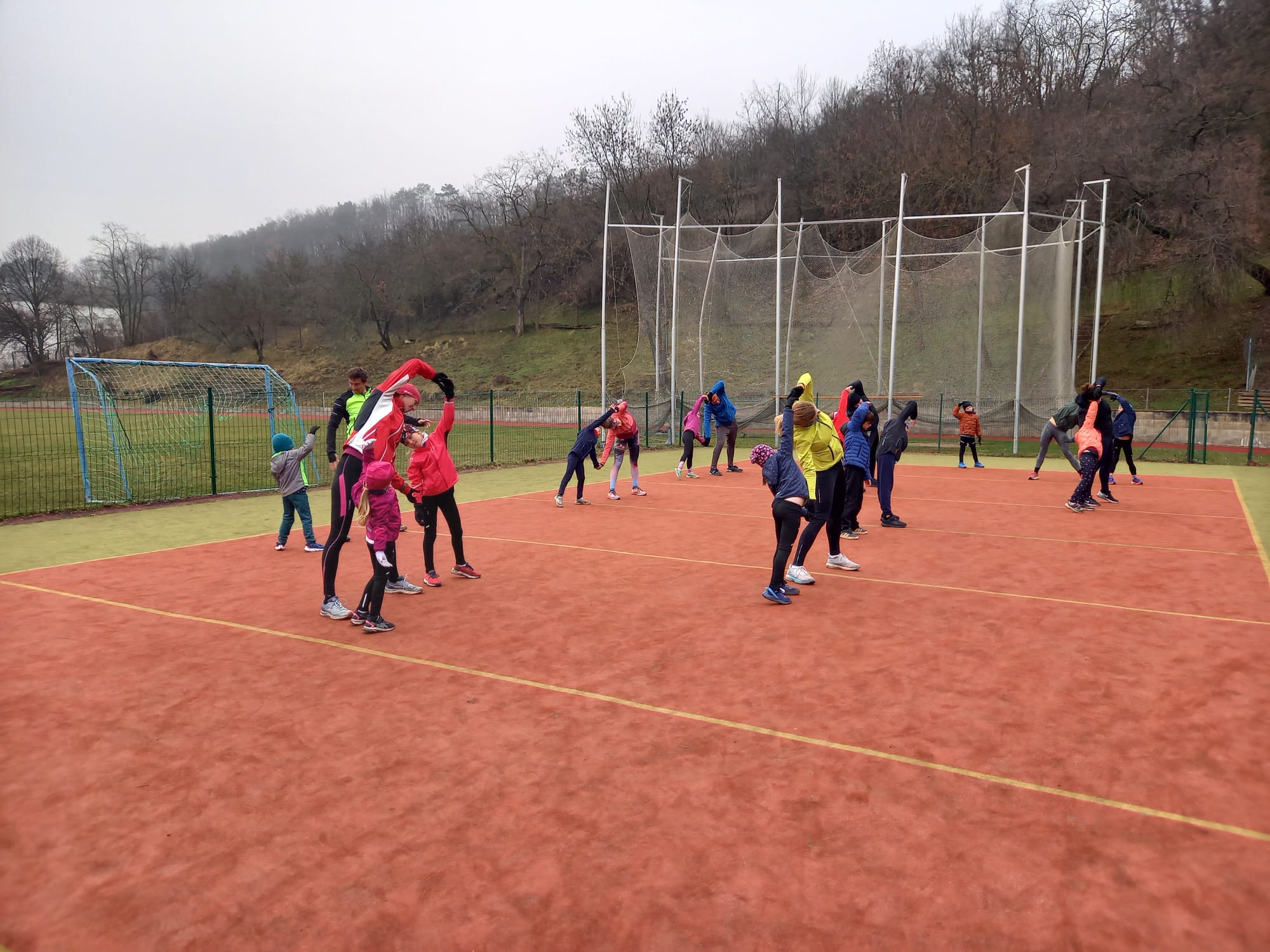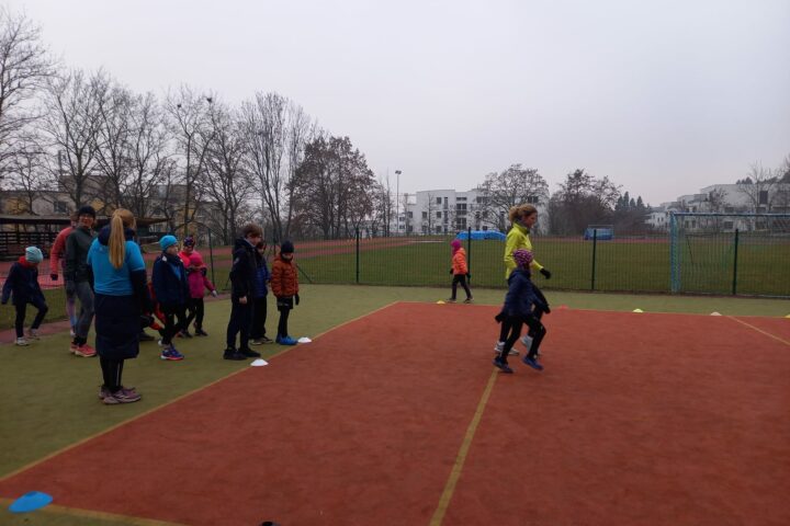Začali jsme rozklusem a hrou na zahřátí, následovala pořádná rozcvička a důležitá atletická abeceda s rovinkami.