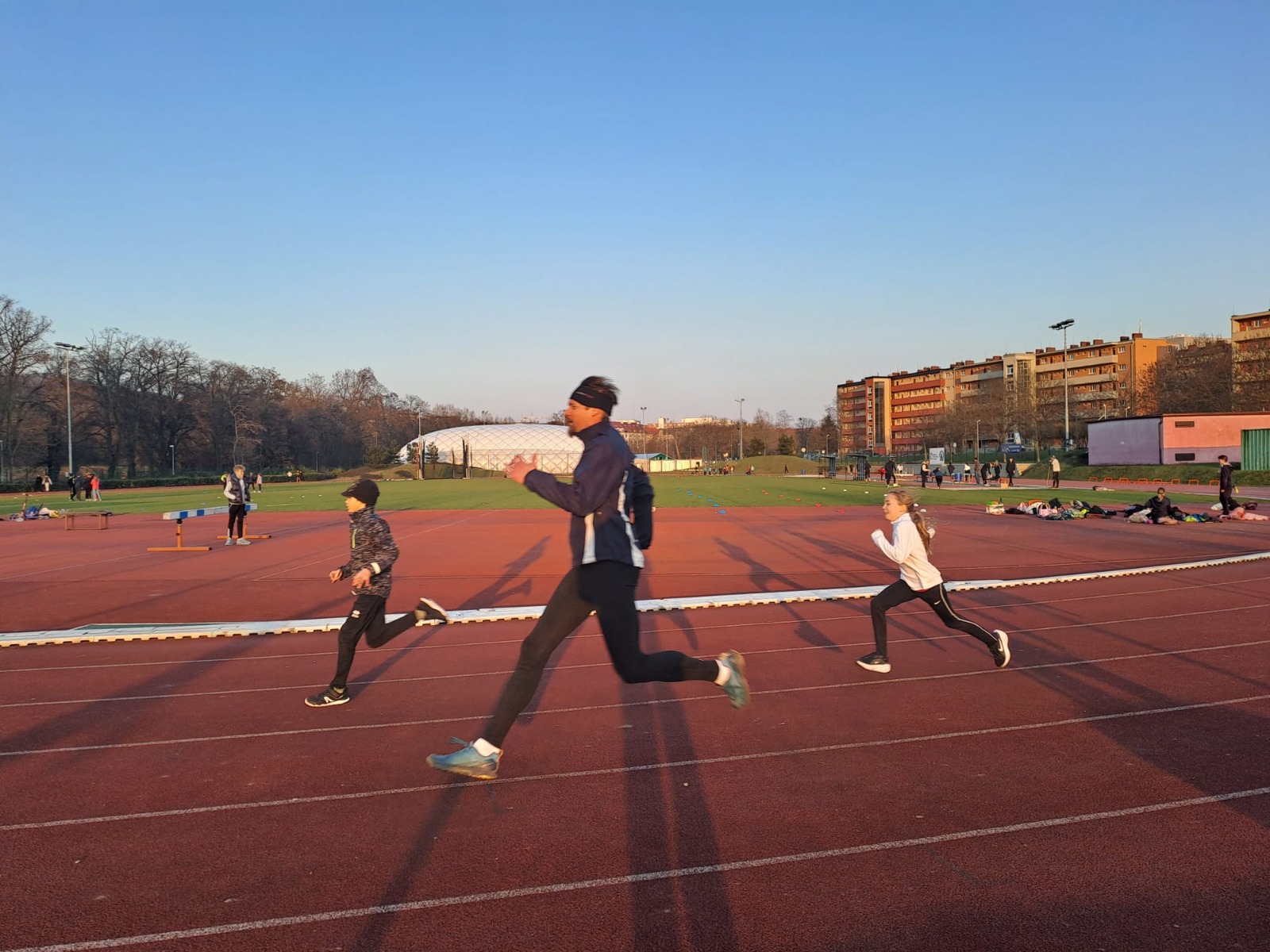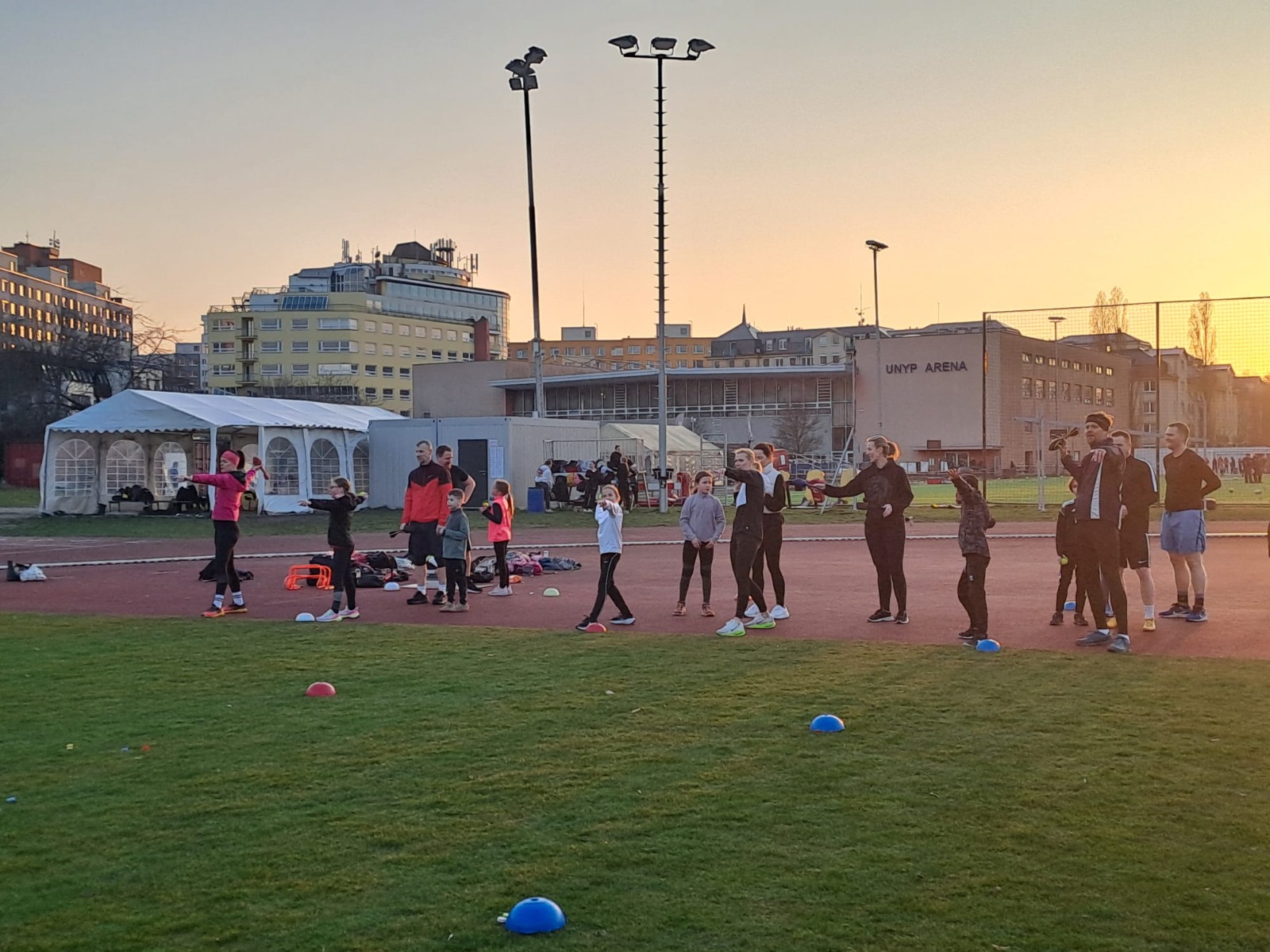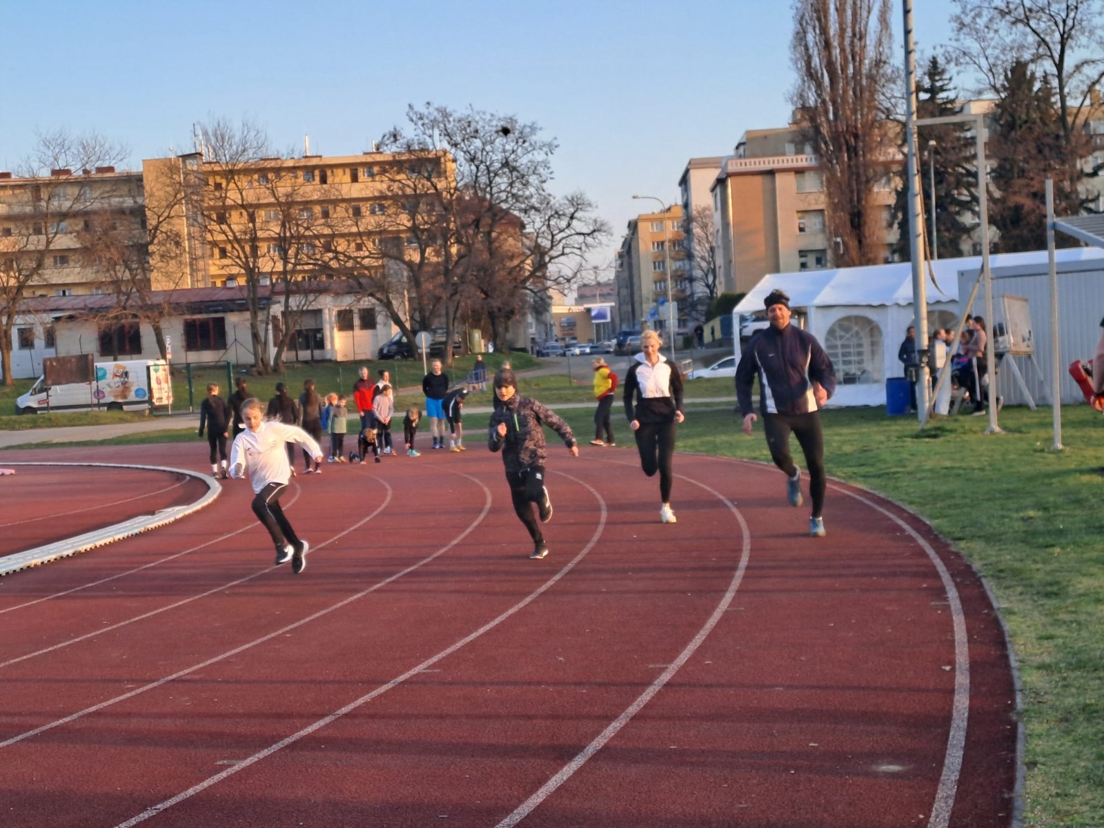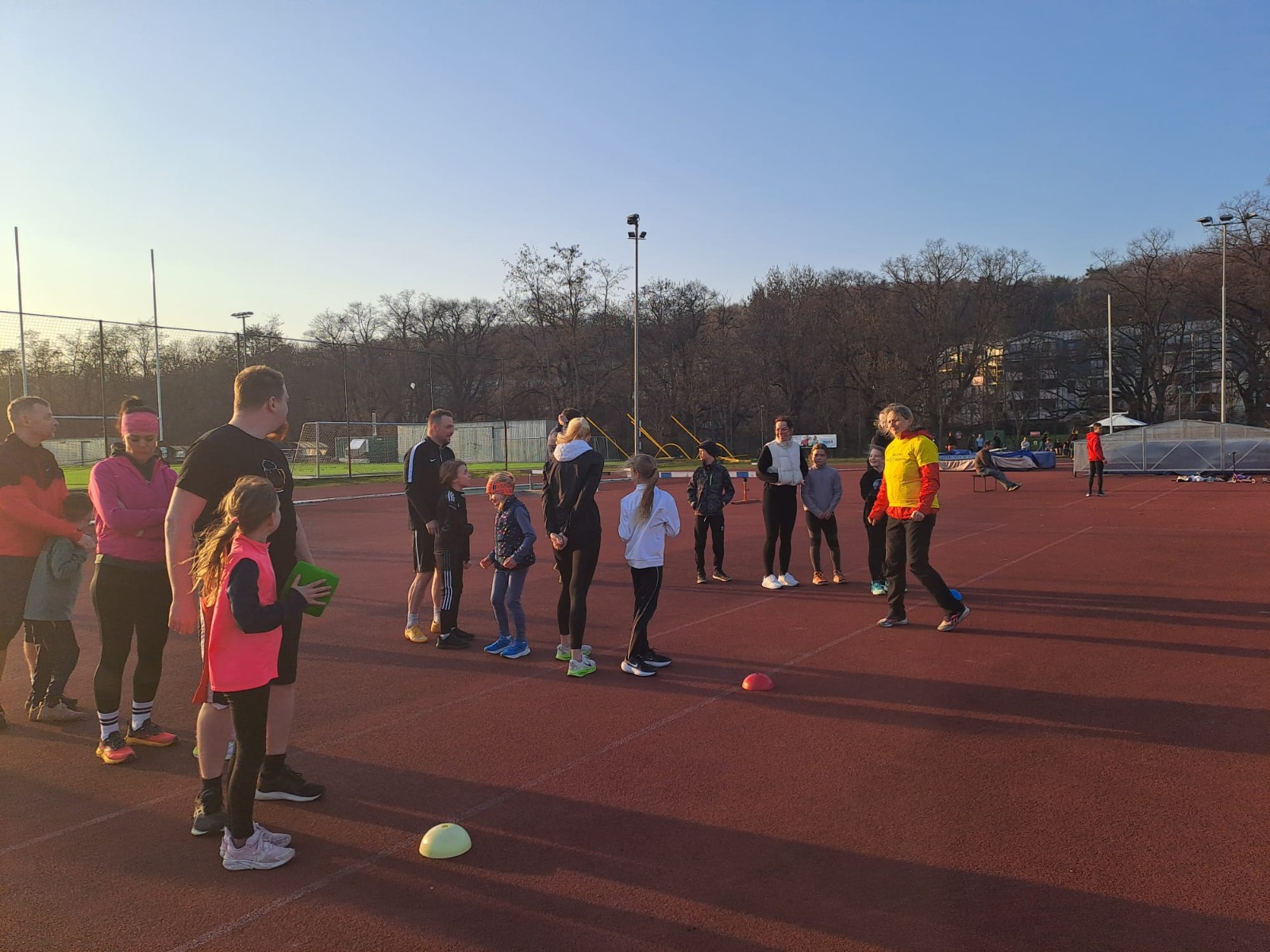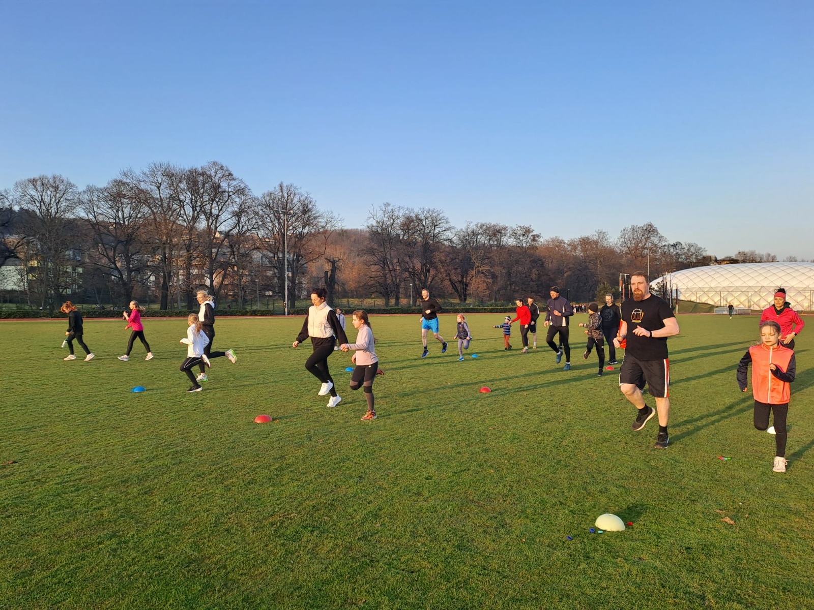 Začali jsem vytrvalostí 300m, aby se všichni ještě trochu víc zahřáli. Běžel rodič a dítě, aby se děti naučily rozvrhnout si síly. Bylo to dobré, jen 2x dítě doběhlo dříve než rodič.