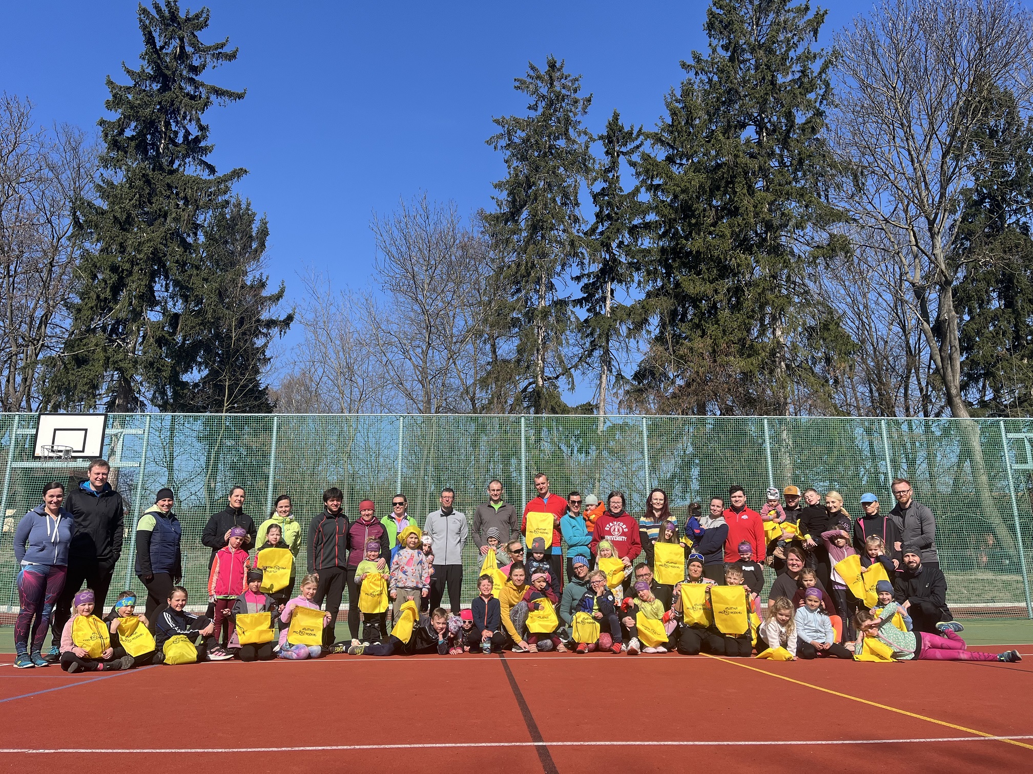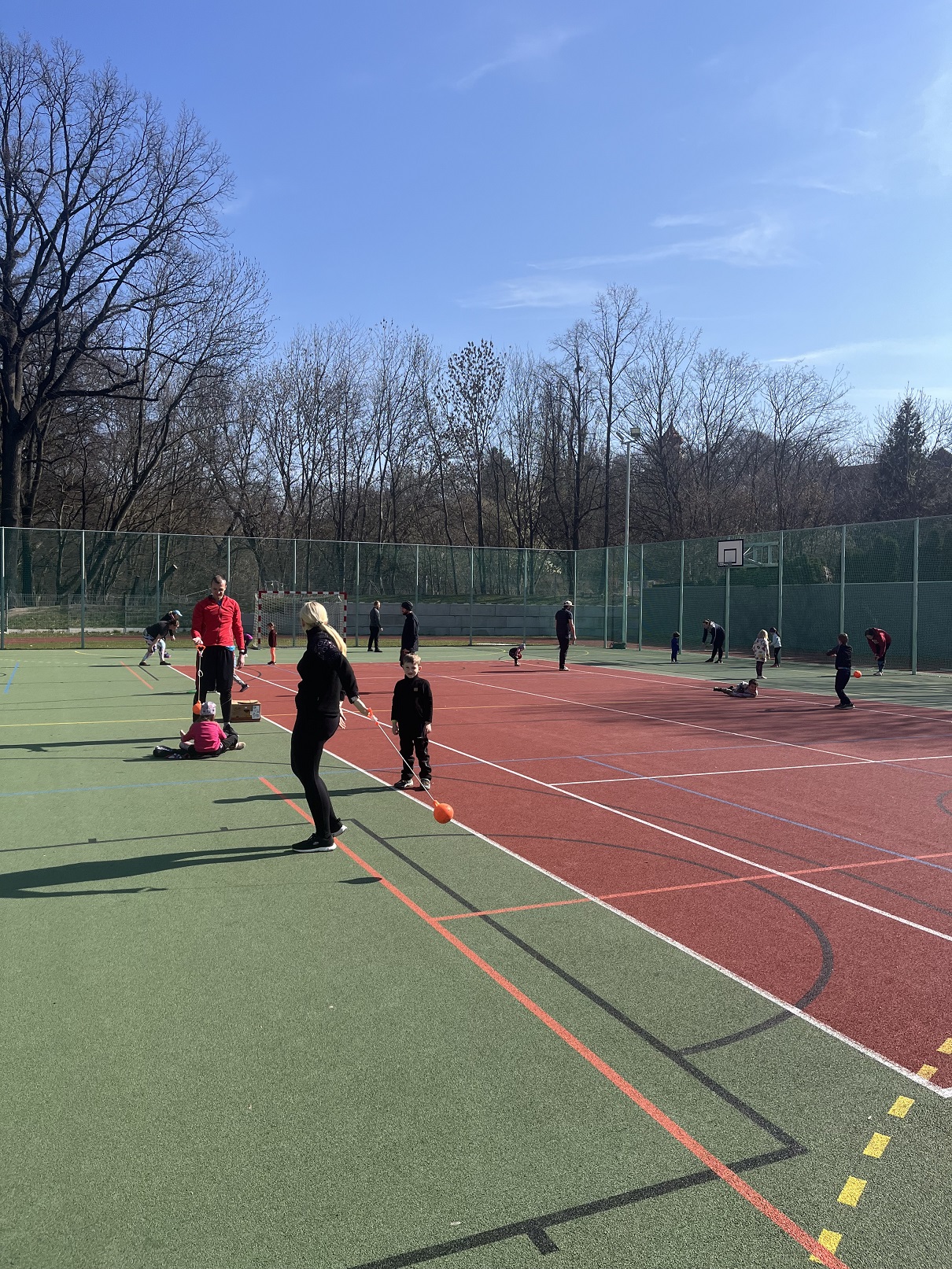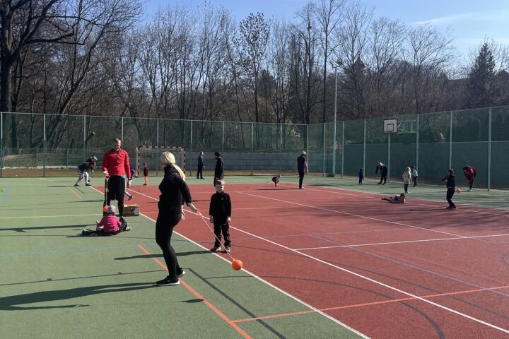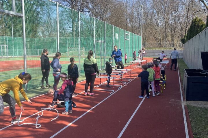 Druhý společný trénink pro rodiče s dětmi jsme naplánovali na předposlední březnovou neděli, kdy nám počasí přálo a jen jeden den po zisku zlaté medaile v polské Toruni na HMS, pro kterou si doběhla Lurdes Gloria Manuel, jsme se do atletického klání vrhli i my na východ od Prahy v malebné vesničce ve Škvorci. Sešlo se na 30 rodičů s dětmi, a jelikož nás čekal vrhačský trénink, rozdělili jsme se na dvě skupiny jdoucí po sobě, aby si každý mohl hodit diskem i kladivem.
