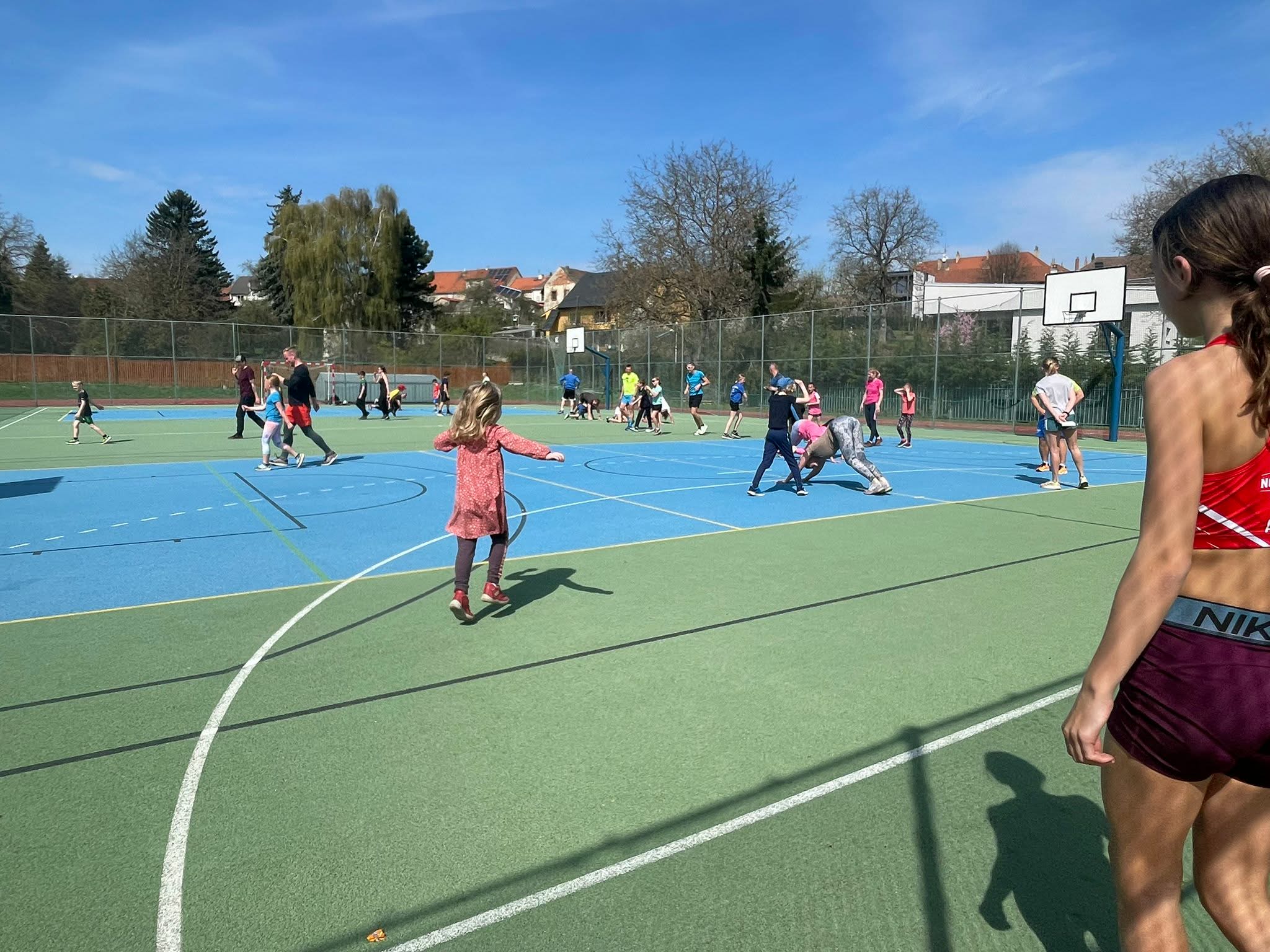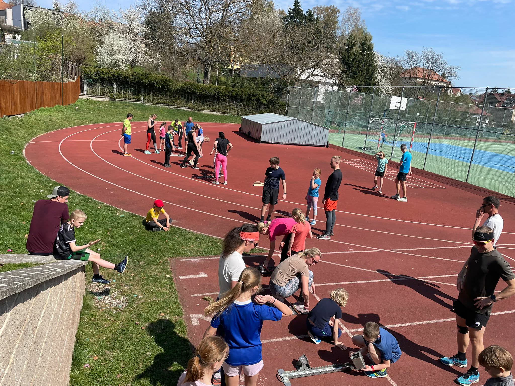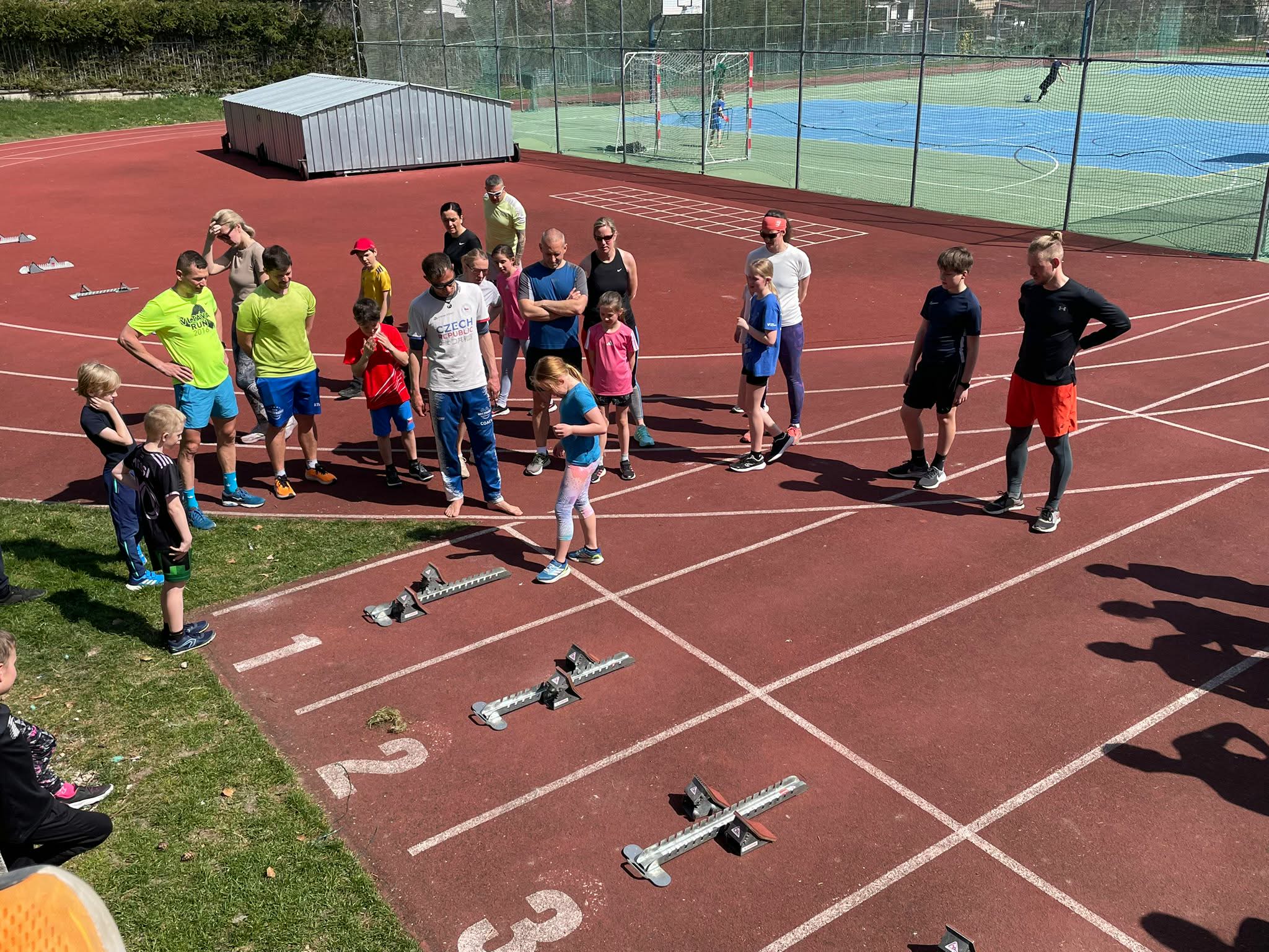 Trénink byl zaměřený na běh. Na začátek si děti zahráli s rodiči „lavinovku“. Protáhli se a udělali atletickou abecedu spojenou k několika odrazovými cvičeními. Následovali reakční hry, kdy se zapotily hlavně děti, protože rodiče jim nenechali vůbec nic zadarmo. Jako poslední část a zároveň zpestření tréninku byl start z bloků, který si vyzkoušeli jak rodiče tak i samozřejmě děti, které to čeká zanedlouho na ostrých závodech přípravek.